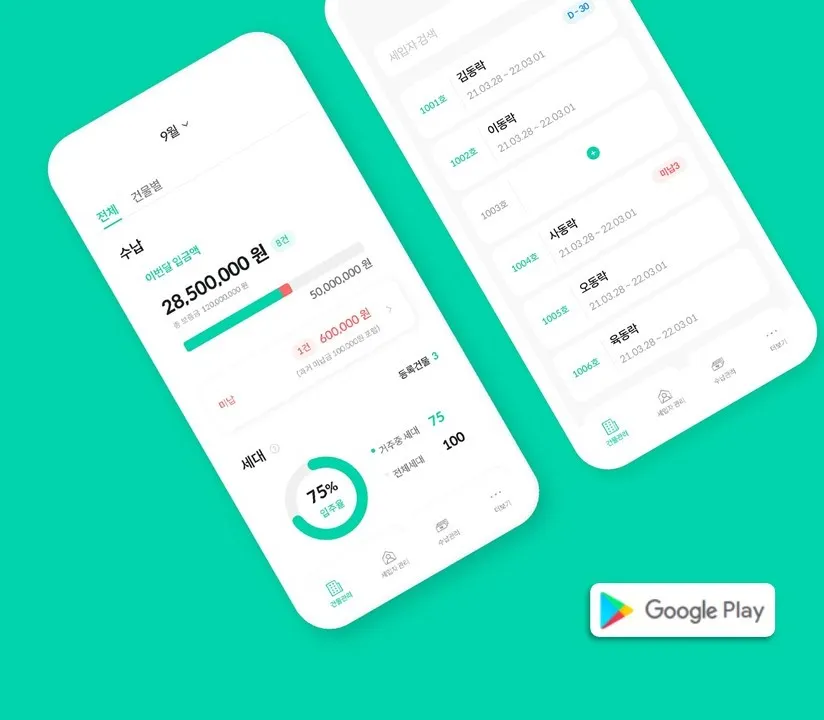 부동산 임대관리 회사(운영사)이면서 APP 개발사인 당사 내부에서도 실제 APP 회원으로서 사용하고 있으며, 다수의 건물과 다수의 임차인(세입자)을 보다 쉽고 편리하게 관리할 수 있도록 만들어가고 있습니다.